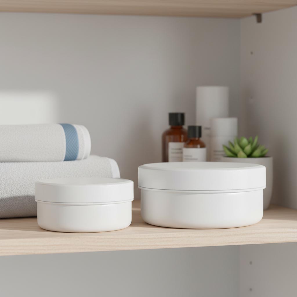 The "White Line" product series from Flaschenland includes high-quality 12 ml plastic jars made from durable polypropylene (PP) in elegant white, equipped with a practical screw cap. These containers are specially designed for the safe and hygienic storage of creams and cosmetic products. The plastic jars of the "White Line" are characterised by their cold-resistant, UV-resistant and dishwasher-safe properties, enabling versatile and long-lasting use. The polypropylene material ensures stability and protection against environmental influences, while the compact 12 ml size is ideal for small quantities or samples. The round shape and white colour give the jars a professional and appealing appearance.