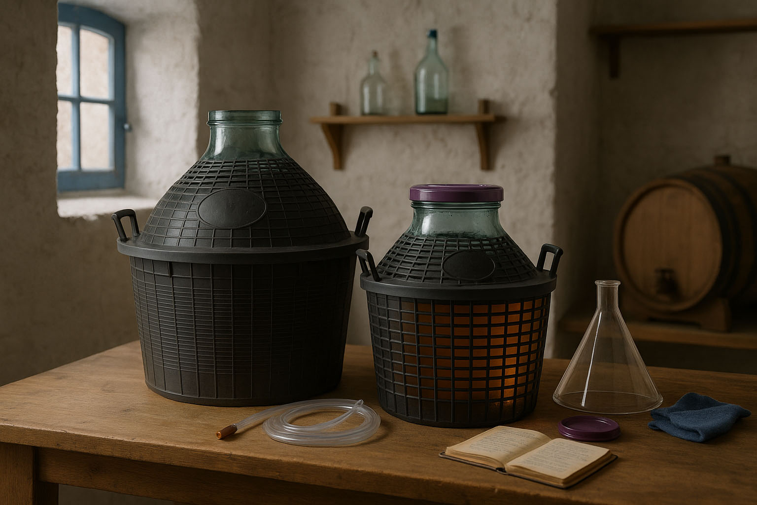 Balloon bottles are the perfect choice for the safe and stylish storage of liquids. Their generous wide neck allows for easy filling and cleaning, while the sturdy plastic basket provides additional protection and practical handling. Available in volume sizes from 5 to 34 litres, they offer a versatile solution for various applications. They are particularly suitable for setting and storing wines, liqueurs, spirits, and other high-quality liquids. Their classic shape ensures even maturation and preserves the aroma over a long period.