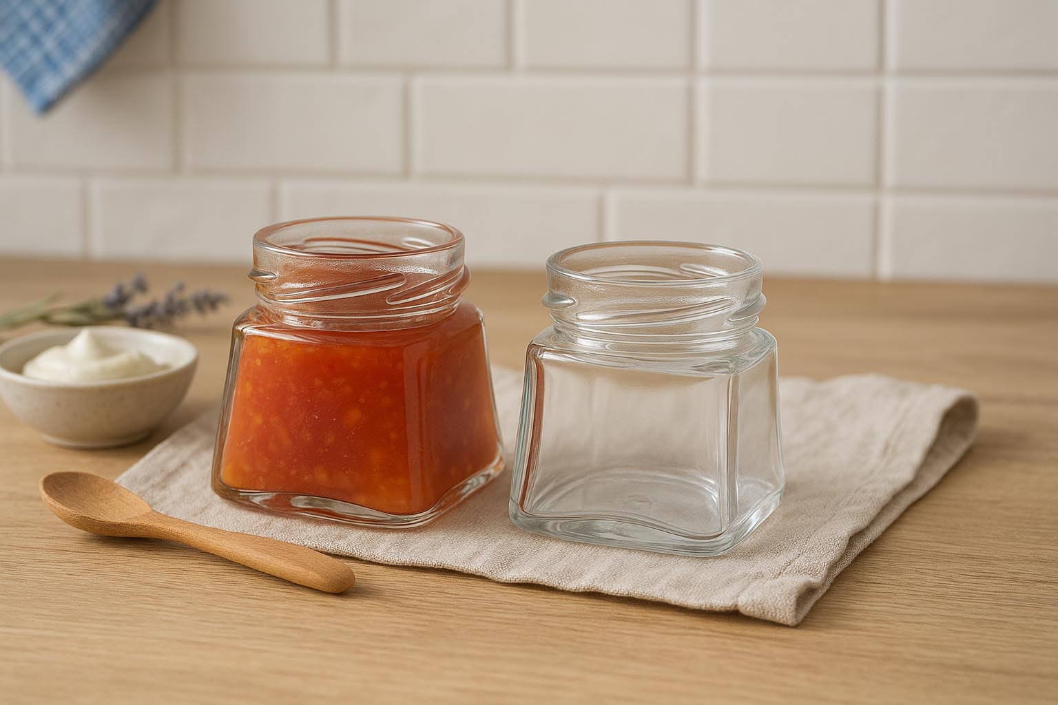 The Luxor square glass impresses with its unique shape: with a rectangular base that transforms into a round shape at the top, it creates a special visual effect. This extraordinary glass design makes it the perfect choice for high-quality creams and lotions, as well as for delicatessen products such as mustard or jams. The Deep Twist-Off necks DTO 58 and DTO 63 allow for secure sealing – matching closures are available in our range. Luxor combines modern design with versatile functionality and presents every content in style.
