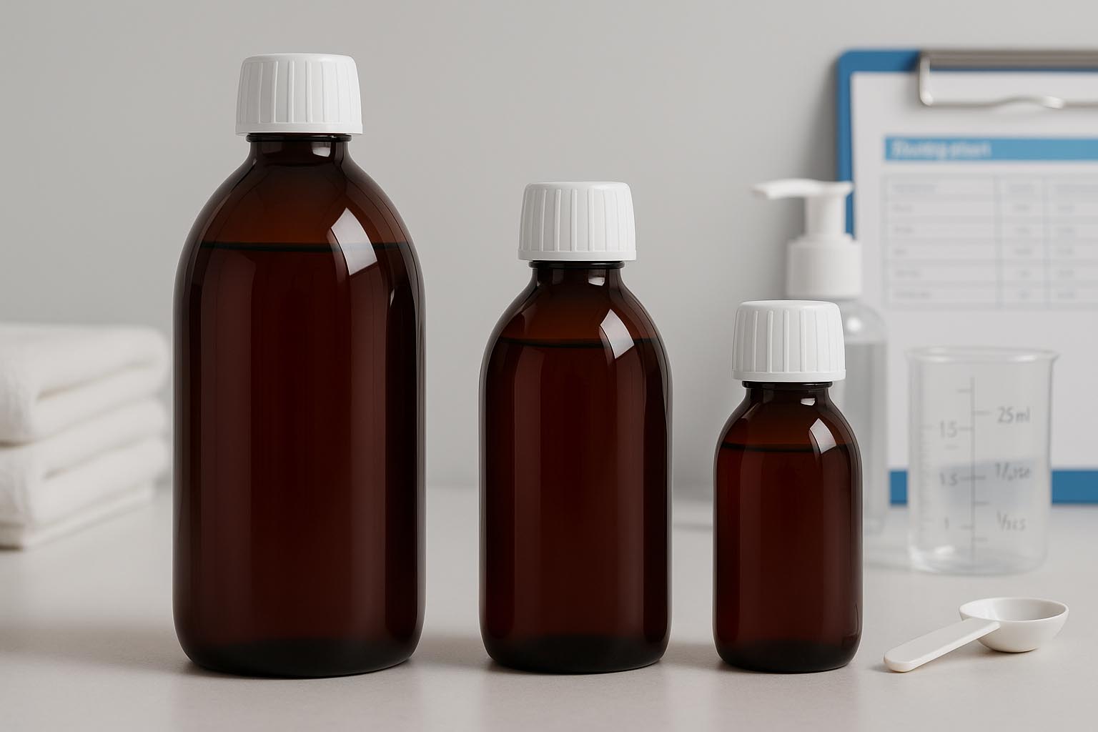 The PET medicine bottle combines high functionality with practical handling and is the ideal packaging solution for pharmaceutical and cosmetic products. Made from high-quality PET (polyethylene terephthalate), it impresses with its low weight, high break resistance and recyclability, making it a sustainable and environmentally friendly alternative to conventional glass bottles. Available in brown, it offers effective light protection and reliably shields sensitive contents from external influences. With a capacity ranging from 60 to 1000 ml and a standardised PP-28 neck, the PET medicine bottle ensures a secure seal – suitable closures are available in our range. This food-safe packaging solution combines safety, convenience and versatility.
