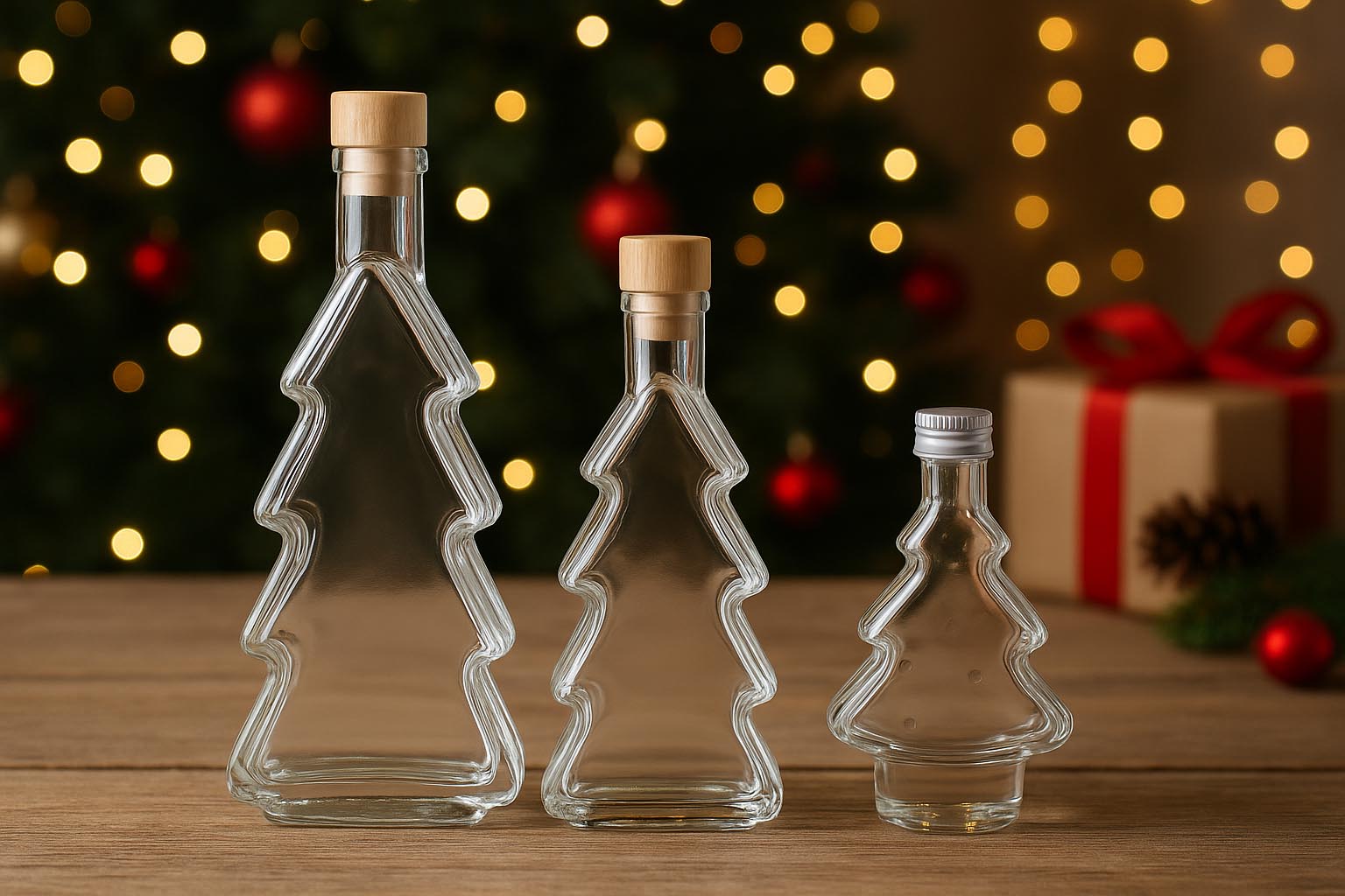 Our diverse special-shaped bottles such as "Eva" and "Adam", "Lucky Piglets", "Christmas Tree" and "Gingerbread Man" embody timeless elegance and set standards in quality and design. Each bottle impresses with a distinctive, often lovingly crafted motif and high-quality workmanship that convinces both professional users and private customers with an eye for aesthetics. The containers are available in various sizes from 40 ml to 500 ml and offer a stylish solution for the secure and airtight storage of spirits, liqueurs and other beverages with cork, PP or swing-top closures.