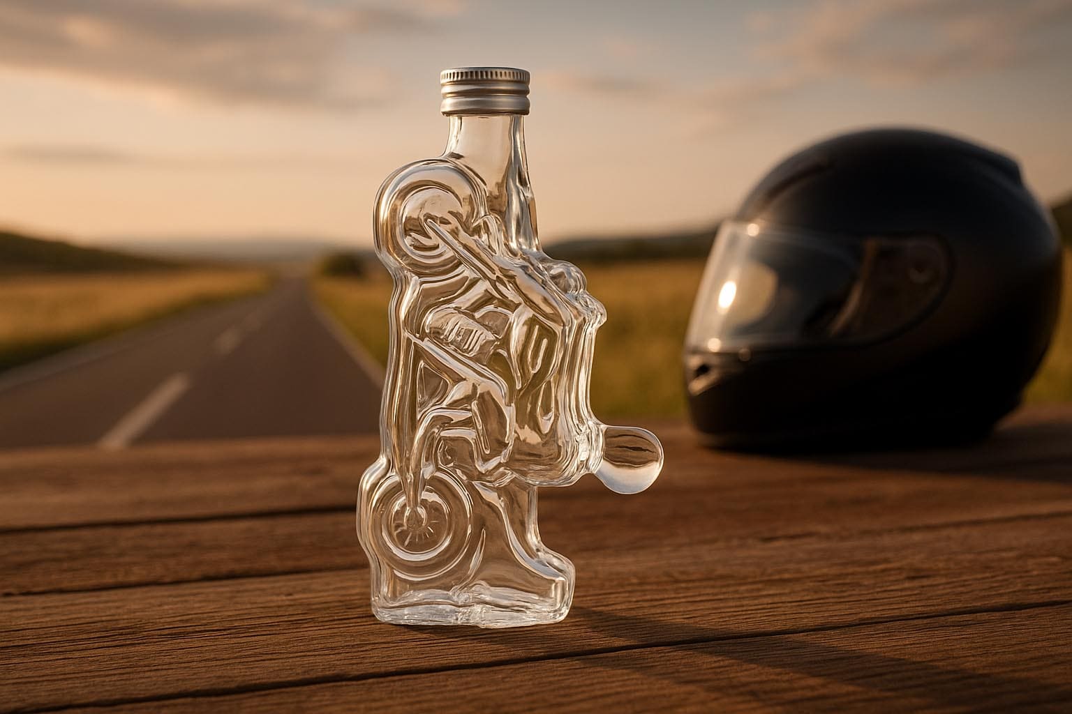 The motif bottle "Motorcycle" is an extraordinary eye-catcher that transforms the feeling of freedom and the fascination of motorcycling into a stylish glass bottle. Its detailed design makes it the perfect choice for everyone who loves speed, adventure, and individuality. Made from high-quality clear glass, it offers an elegant packaging for spirits, brandies, liqueurs, and other special delicacies. The practical PP-28 neck format allows for easy handling and ensures a secure seal. Whether as a gift for motorcycle enthusiasts or as an original presentation bottle – the "Motorcycle" bottle combines striking design with functional quality.