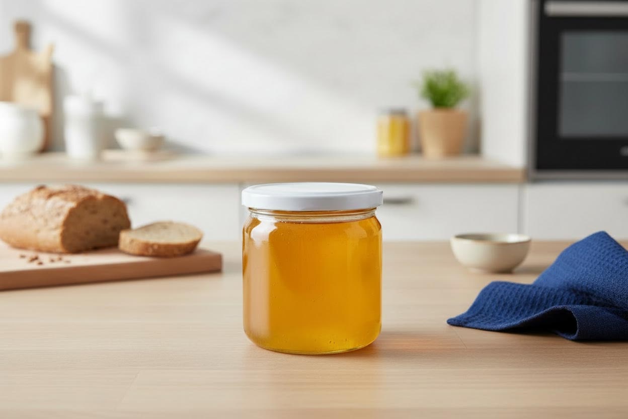 The 388 ml honey jar with Twist Off closure (TO 82) is the perfect choice for beekeepers and honey lovers. It keeps honey fresh and protects against moisture, also ideal for jams.