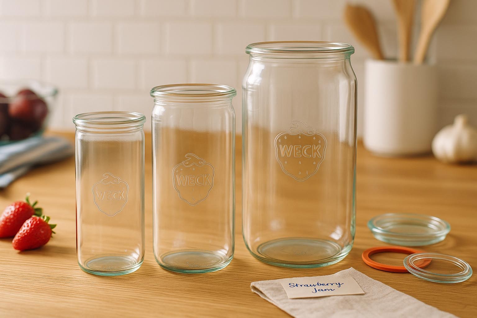 The rounded rim openings of WECK jars are an essential feature of traditional preserving jars. They allow for simple and reliable sealing using a glass lid, a rubber ring, and the characteristic preserving clips. The uniform, rounded shape of the rim ensures optimal sealing during preserving and easy cleaning. In our range, you will find the suitable lids and rubber rings from WECK for various jars and applications.